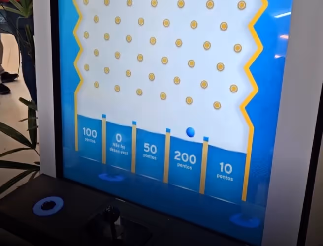 Assim que um cubo fosse escolhido e posicionado no local indicado, um vídeo da categoria apareceria simultaneamente em um grande painel de LED instalado na testeira do estande.