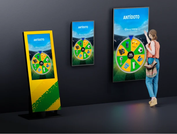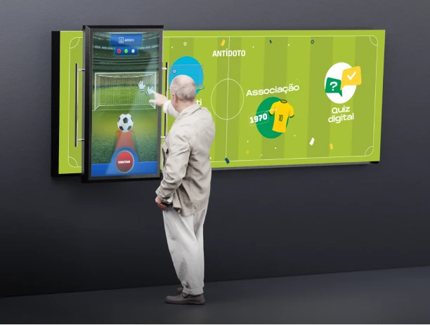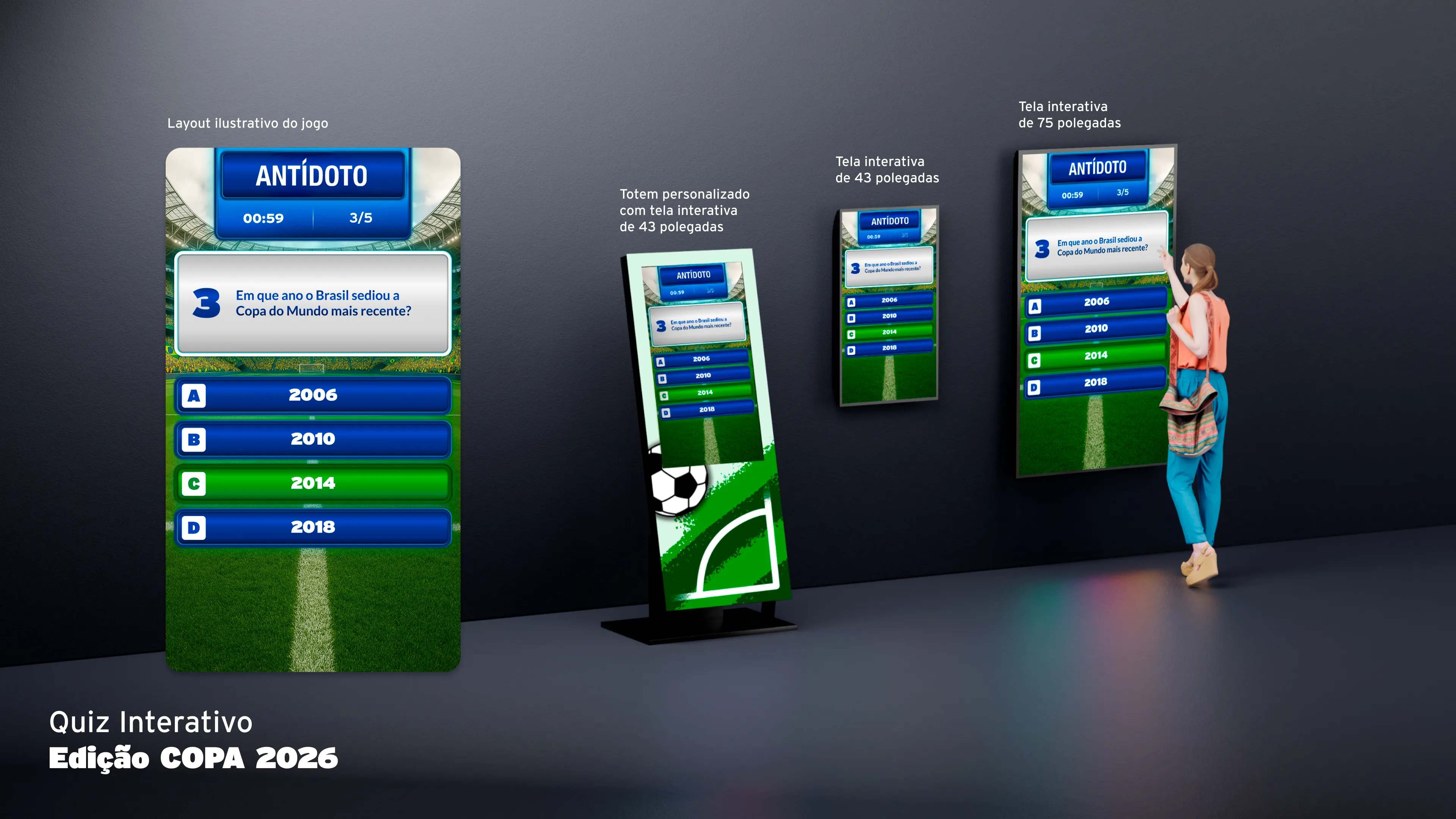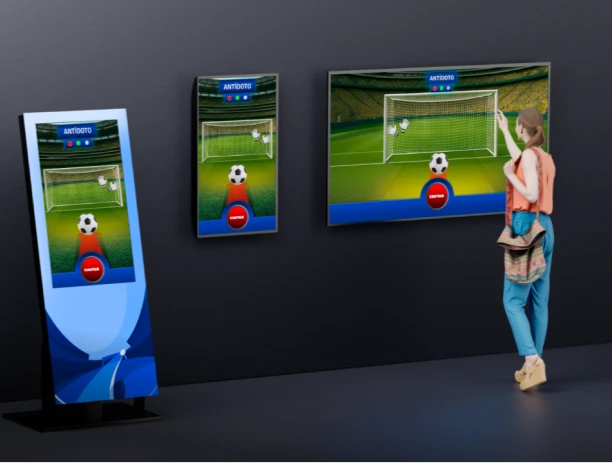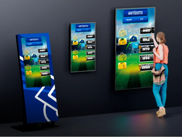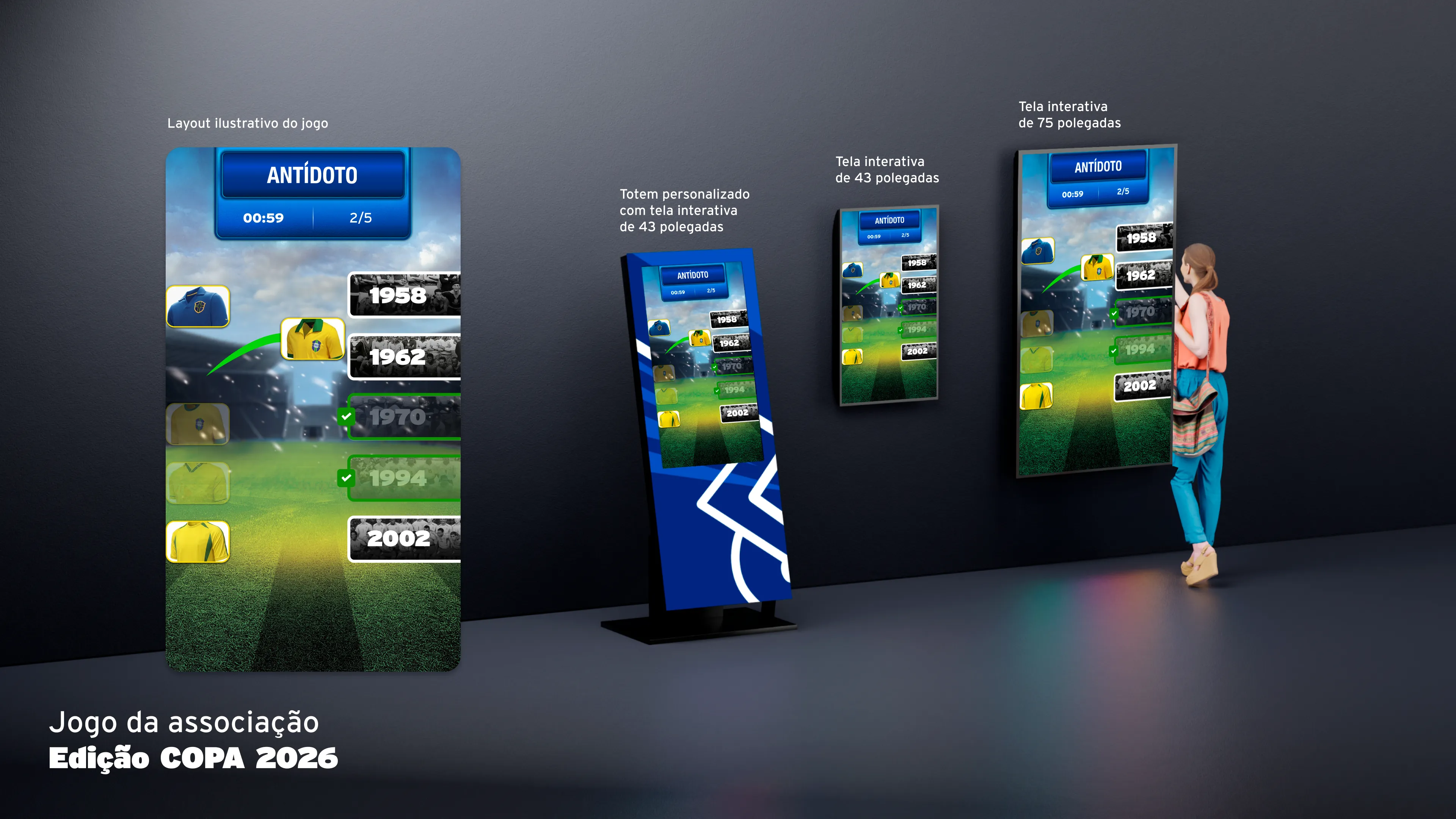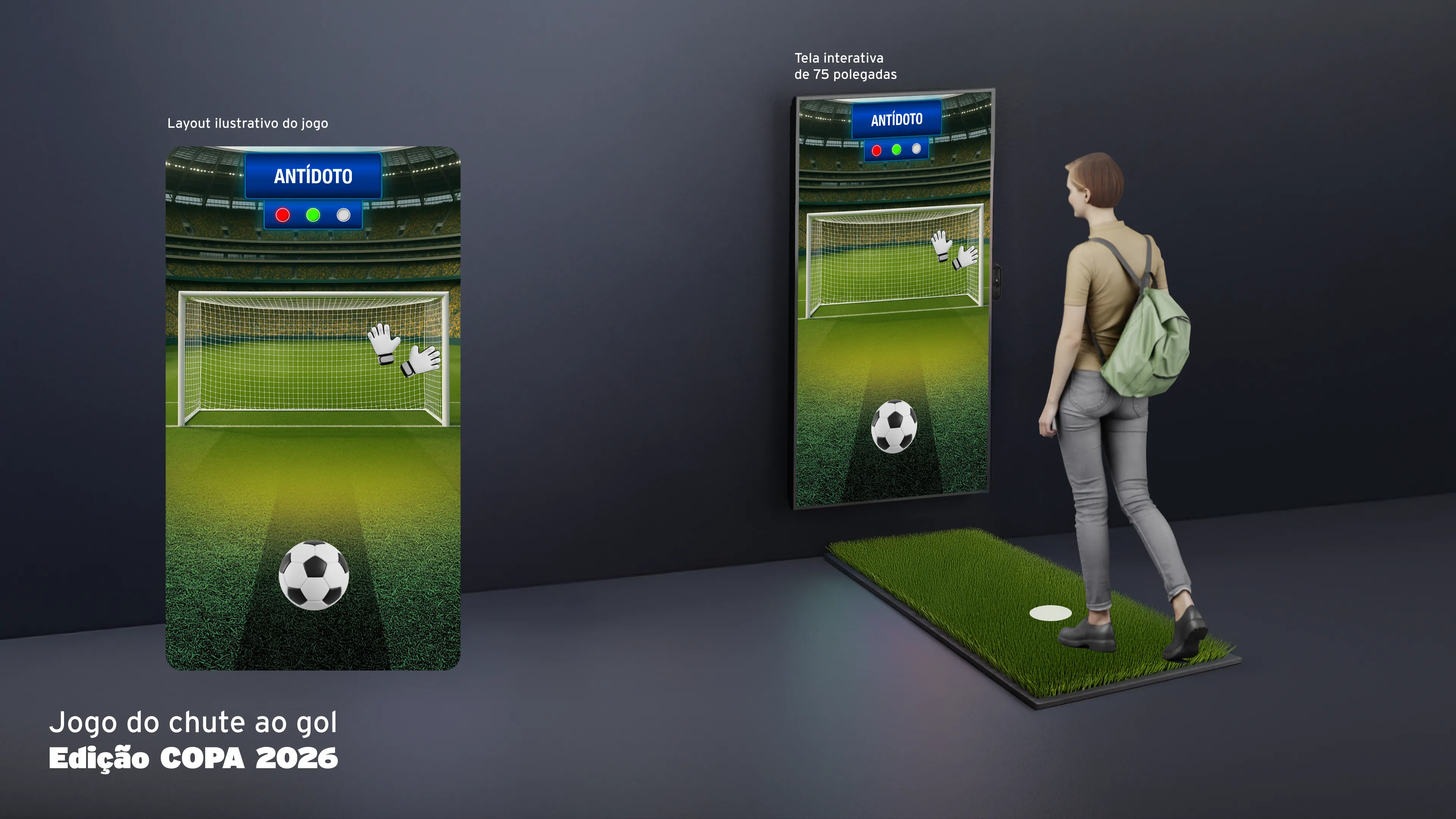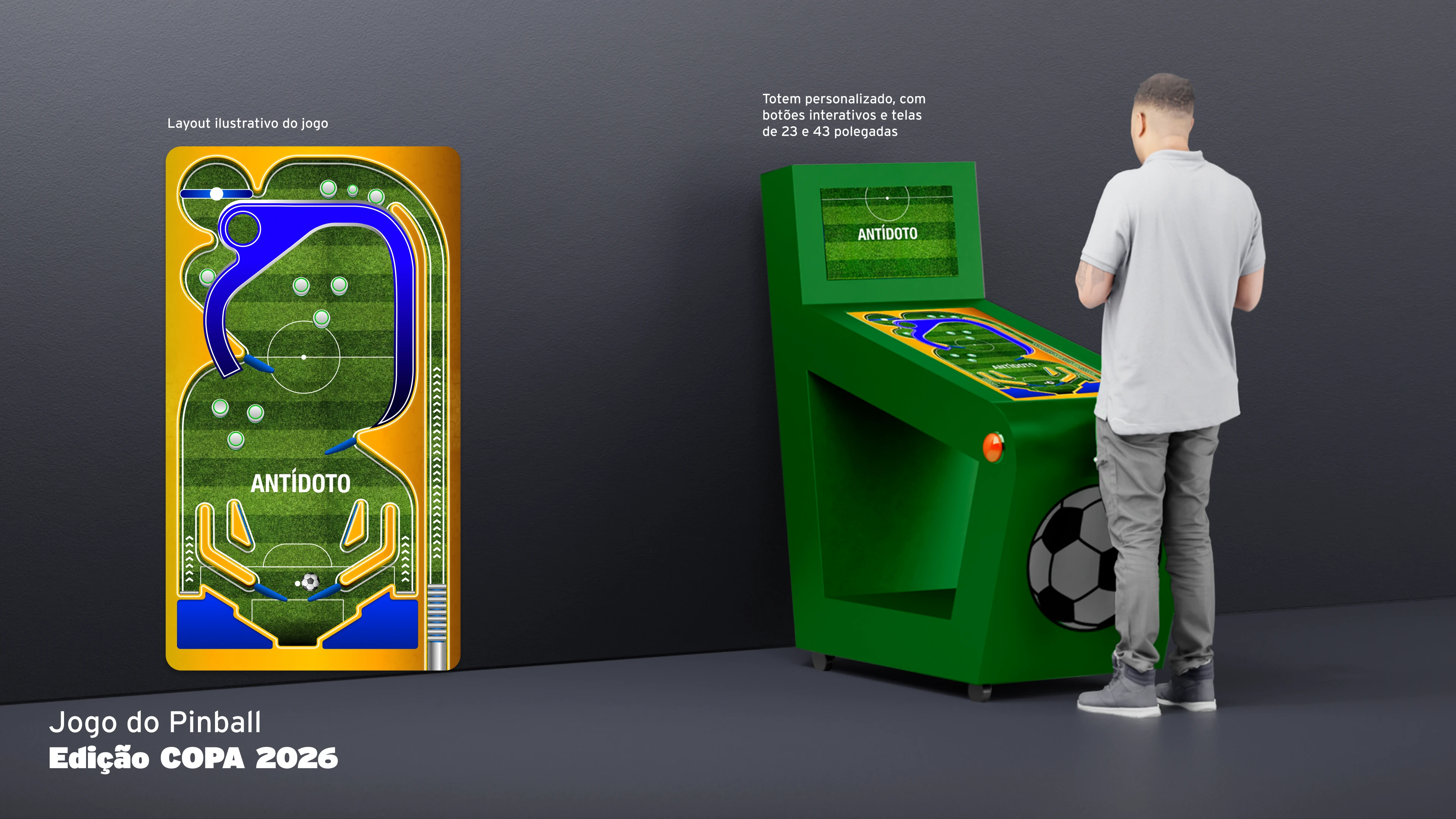 Estações interativas da Antídoto com tema Copa reúnem diversos games simultâneos, todos com temática de futebol.