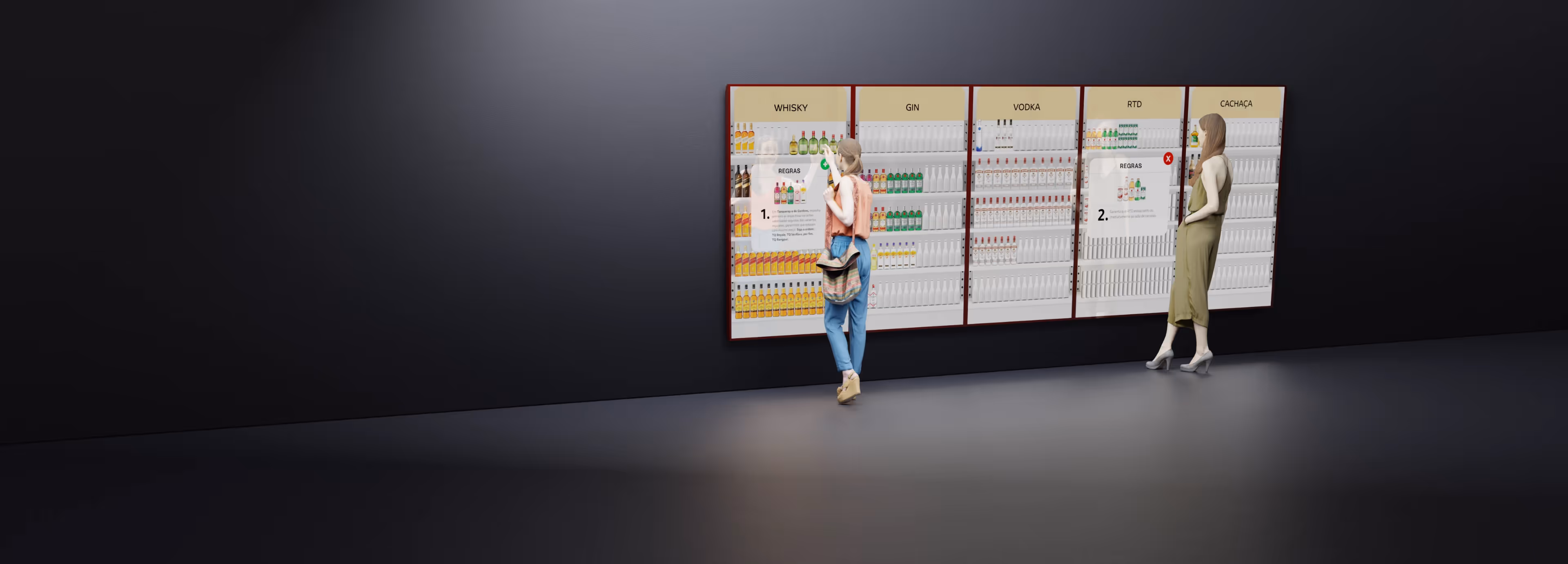 Versátil e personalizável, a Mega Wall se adapta a diferentes propostas: de conteúdos interativos com gameficações multiplayer envolventes a planogramas digitais para treinamentos de equipe, sempre com fluidez, imersão e alta performance.